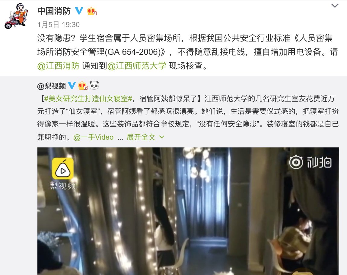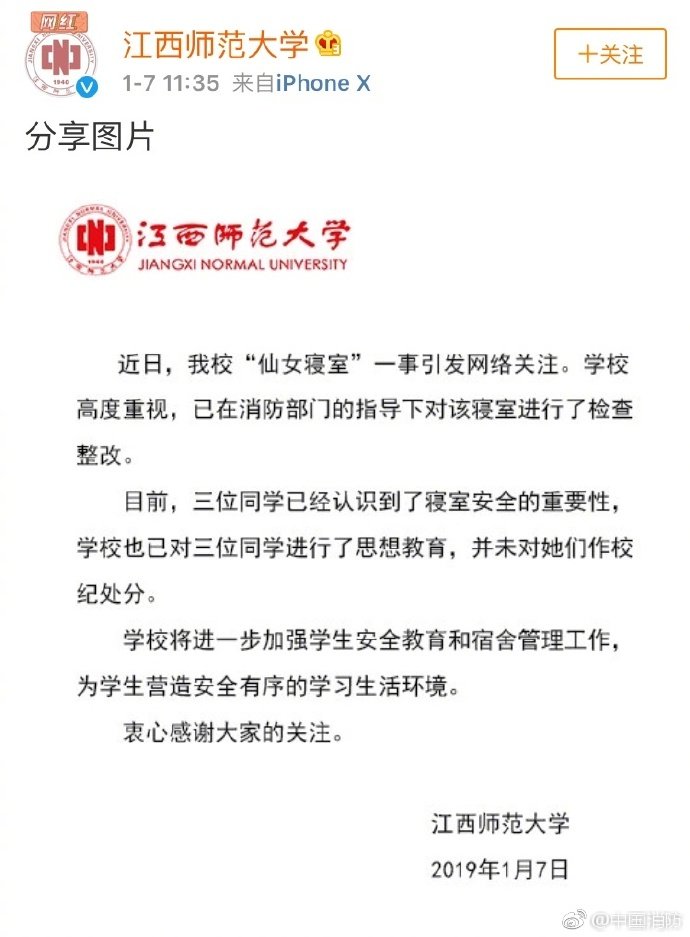 接着仙女寝室就覆灭了,江西师范大学配合南昌市消防队将仙女寝室进行了安全检查,并且把不符合安全规定的设备就地拆除,整改到位。